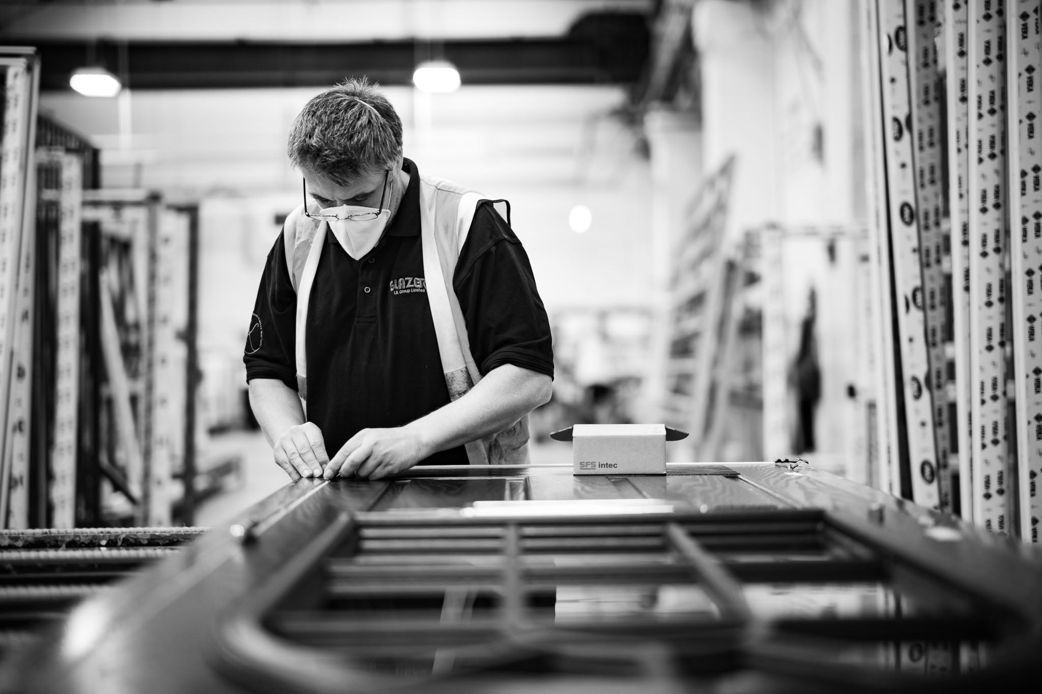 These editorial pictures are part of a series commissioned by Leading Business Magazine; All Things Business UK for an editorial piece about glazing specialist The Glazerite UK Group Ltd with sites throughout the east midlands, These images relate to the Wellingborough site only. When on location in a full working environment of a factory floor, working quickly and efficiently is critical, time is money as they say. With that in mind I chose to shoot most of these images with just available light and only a handful with off camera flash. I tend not to pose subjects in working situations as I don’t know the job. I let them do their job and shoot around them. I believe this gives a more authentic result. The finished images are very pleasing and serve the editorial aspects but also the promotional aspects going forward for the company. These images shown here in black and white but these images work equally well in colour. Every print based magazine or news paper requires different editorial pictures to suit there layout aesthetic by using an experienced professional photographer you images should be up to the required standard.